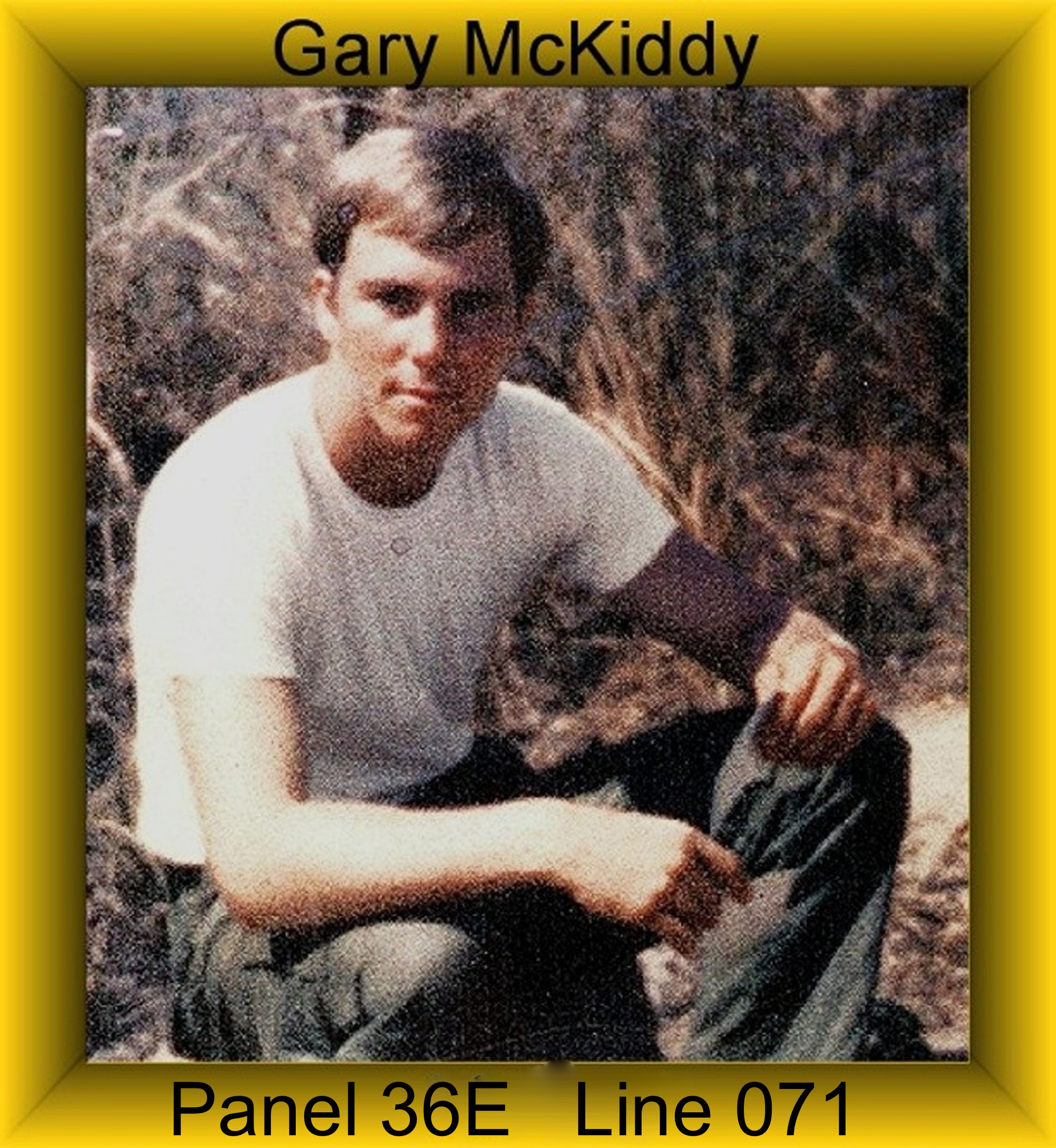 Gary L. McKiddy was a member of a three-man Scout Team. The pilot was Tommy Whiddon and the co-pilot was James Skaggs. When his helicopter was shot down, Gary was thrown free. He ran back to the Helicopter and pulled the Co-Pilot free and took him to safety. Gary then returned to the helicopter to free the in conscious pilot from his seat belt and as he reached across the pilot the helicopter blew up killing both Gary and the pilot. This story is written by his younger brother Ron McKiddy.