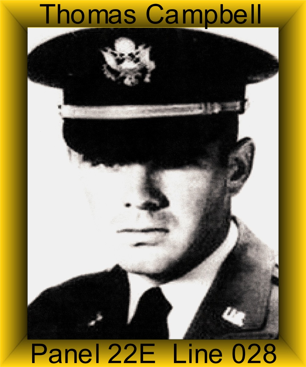 Thomas Campbell was assigned to Charlie Troop on March 23, 1967 and was Killed in Action on June 21, 1967. Thomas was a Pilot of an UH-1C Helicopter.