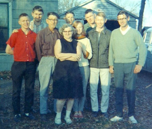 This photo was taken just before Donnie departed for Vietnam. In the back row is Cordis (Ray), Tom and Donnie. In the middle row is Jack, Cordis, Helen, John and Bill. Lucille is standing in the front.