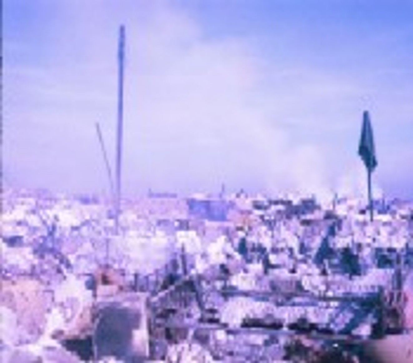 The Ammunition Dump sent artillery rounds flying through the air. As we moved out to the perimeter, chunks of metal and bullets could be heard buzzing as the went by. The good thing was as long as you could hear them they weren’t making contact with your head. On the perimeter, we had holes dug into the ground. On the sides we had sandbags piled four or five high and then a layer of PSP (Perforated Steel Planking) was laid across the sandbags and then another three or four layers of sandbags were stacked on top of the PSP. We got down inside but every time another huge explosion would occur the sand would start pour down inside. One of my greatest fears is being buried alive. Because of this, I crawled outside but quickly realized that if you sat on top of the bunker those buzzing noises would scare the hell out of me as they did being inside. To sit in front of the bunker was the only thing to do. You just hoped that if you sat still enough if there were enemy soldiers out there, they couldn’t see you. However, if there was ground attack there was nothing between the enemy and you but air. I decided to go back into the bunker.