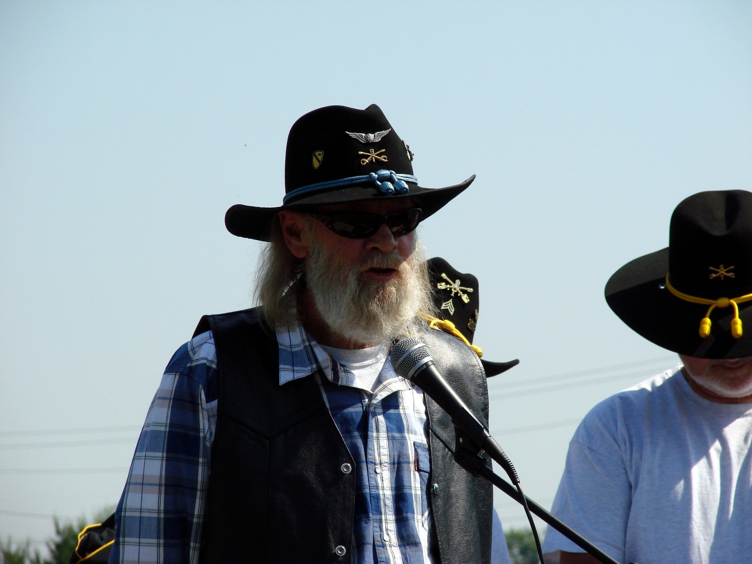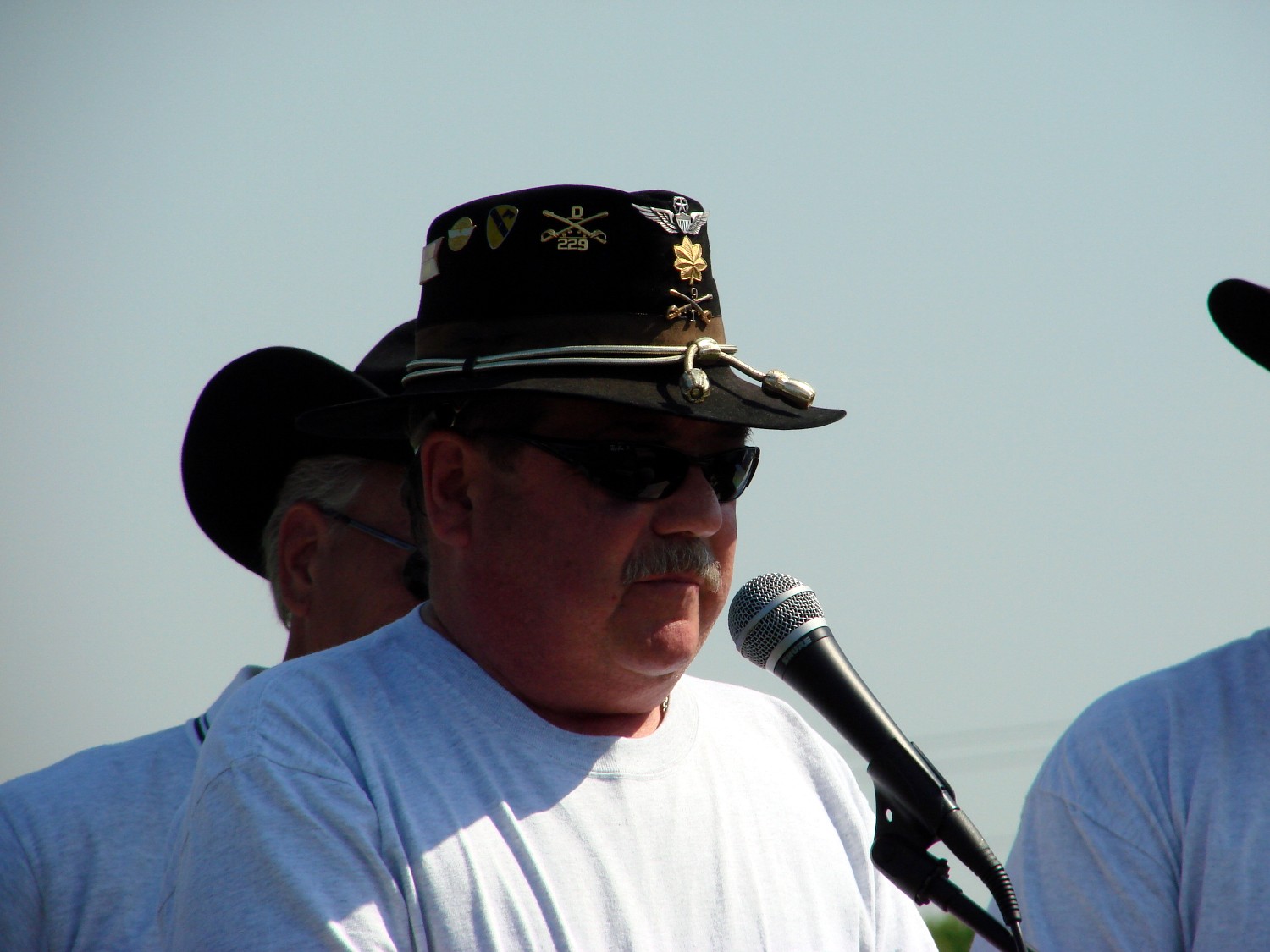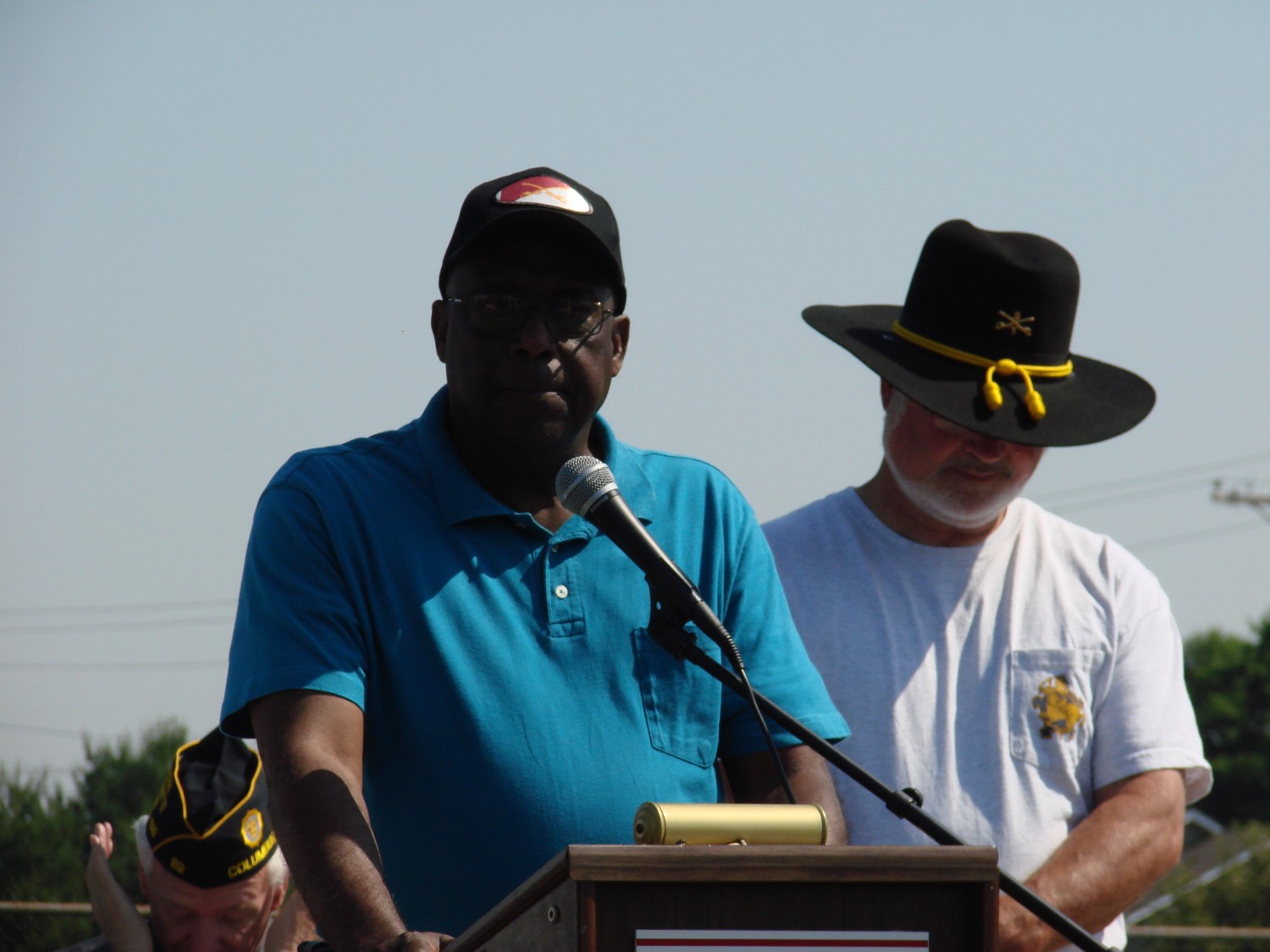 The ceremony started with the usual dignitaries to include the State Congressman (MR Stivers) who was instrumental in aiding Nate at getting 990 and to bring her home. On the stage was a survivor of Pearl Harbor, Nate Shafer, Bruce Campbell, Russell Hauser, Herb Skinner, Barry Sipple and Greg Jayne. Bruce Campbell was the pilot of Zit 990. Russell Hauser was the Crew Chief and Nate Shafer was the door gunner. It is not very often that one can find the crew who served on one helicopter (40 years esrlier) but to get them all in one place at one time was very special. This was a very special day. As I looked around, I saw many Stetsons and most of them wear bearing the 1/9th Crossed Sabers. I also notice that from the very young to the more chronologically challenge were present.