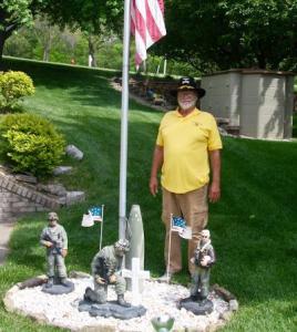 He has a memorial in front of his house for one of his deceased buddies, and every year he arranges rope lights in the shape of a white cross on his lawn for Memorial Day.